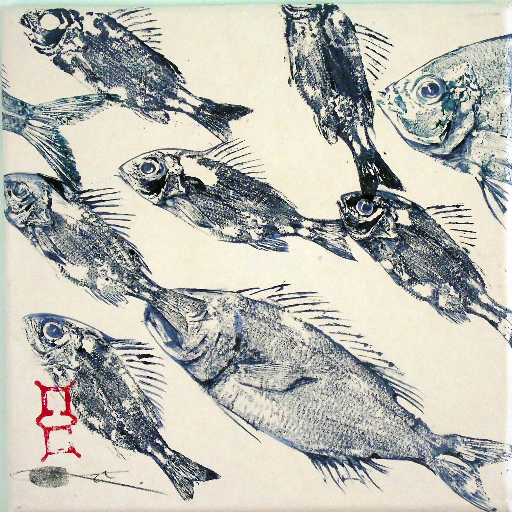 30x 30cm. Indigo ink on Japanese Washi paper.